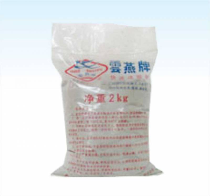 (6)一般情况下,不宜用本品干粉直接堵漏。在紧急情况下(如水池或船舱漏水)可将干粉直接投向漏水点或水坑,用手压住或用脚踩住,待硬化后才放松。